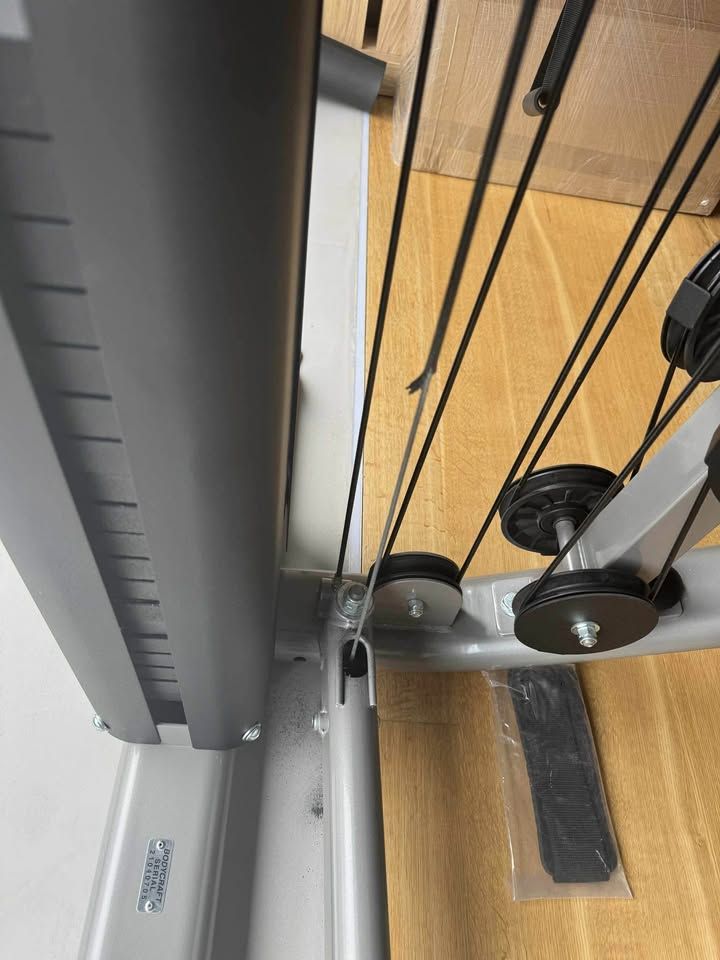 Sprzedam wysokiej klasy atlas, stan jak nowy, jedna osłonka od linki jest uszkodzona z racji niepoprawnego montażu (używana wyłącznie przy wiosłowaniu) jak na zdjęciu, ale nie przeszkadza to w prawidłowym wykonaniu ćwiczenia. Sprzęt używany w domu przez 2 miesiące. Cena nowego sprzętu tej klasy to 16000-17000zł. Sprzęt wymaga demontażu w ciągu najbliższego tygodnia (do 13.11.) i transportu własnego z okolic Starogardu Gdańskiego.