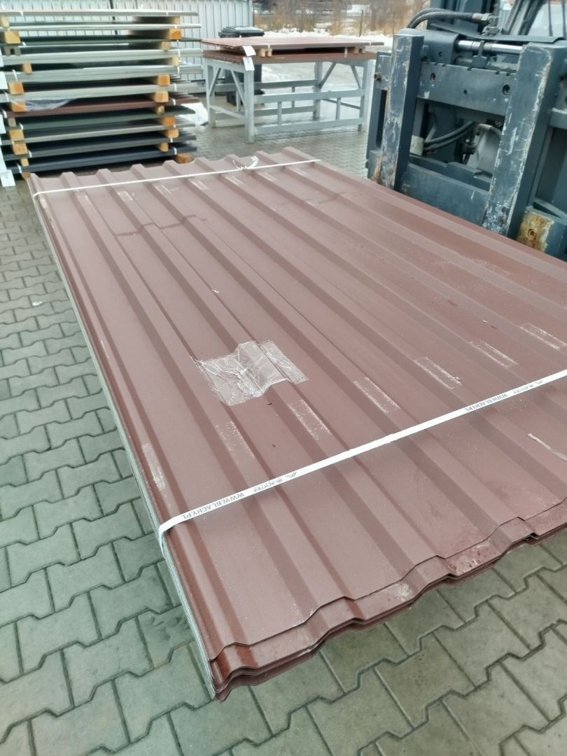 Blacha trapezowa brąz - pakiety 50 sztuk. Tanio i od ręki